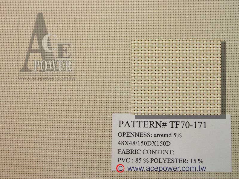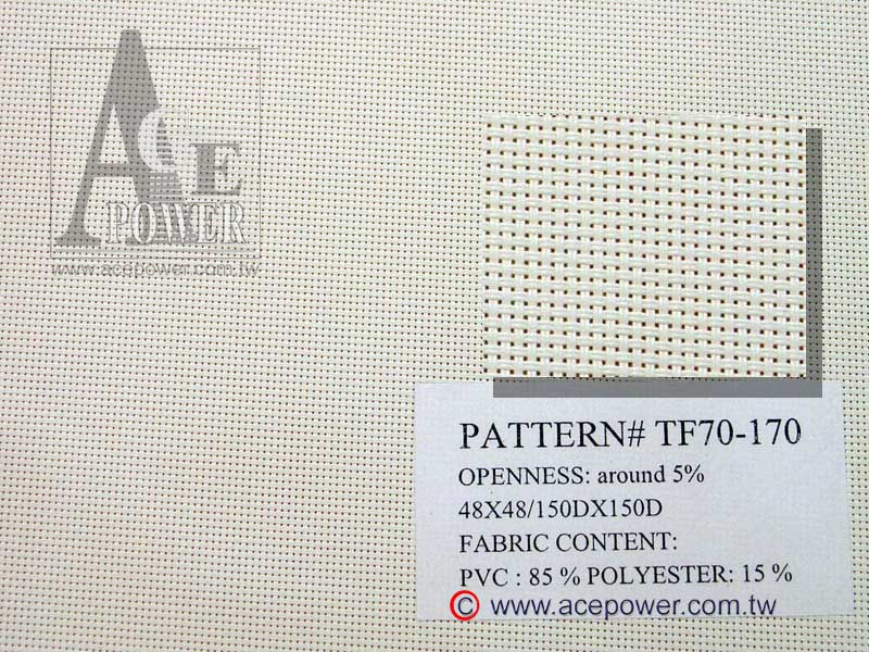 Specification: 48X16/500DX500D, Fabric Content: PVC: 75%, Polyster:25%, Openness 1% |